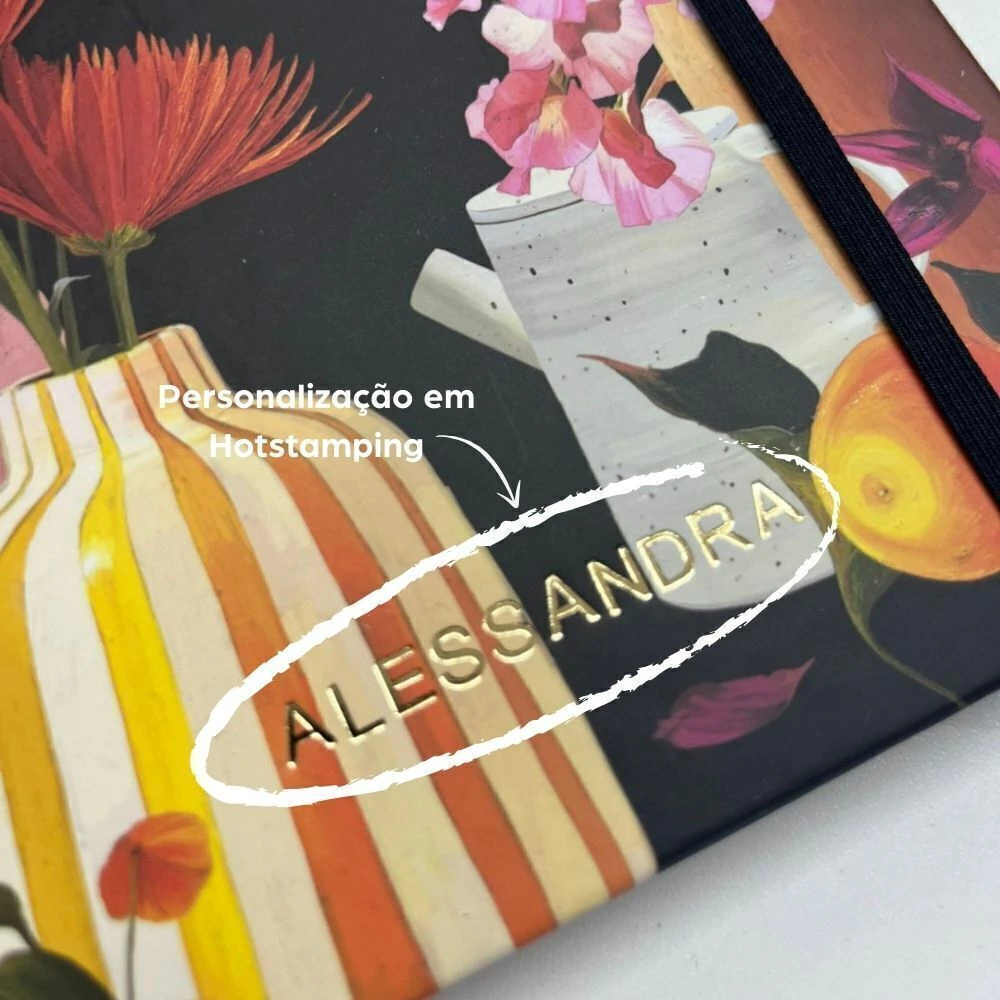 Personalização: feita em hotstamping dourado manual, podendo haver pequenas variações no resultado. Não possuímos acento gráfico na aplicação em hotstamping; quando necessário, ele é adicionado manualmente com caneta dourada, garantindo um toque artesanal e único.