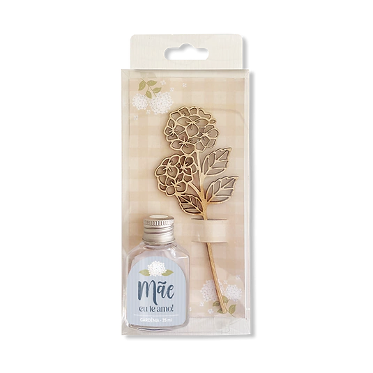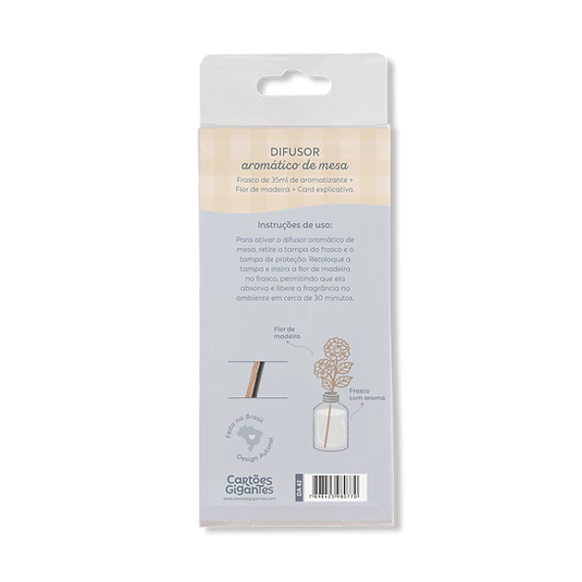 Contém um frasco de 35ml de aromatizante + Flor de madeira + Card explicativo