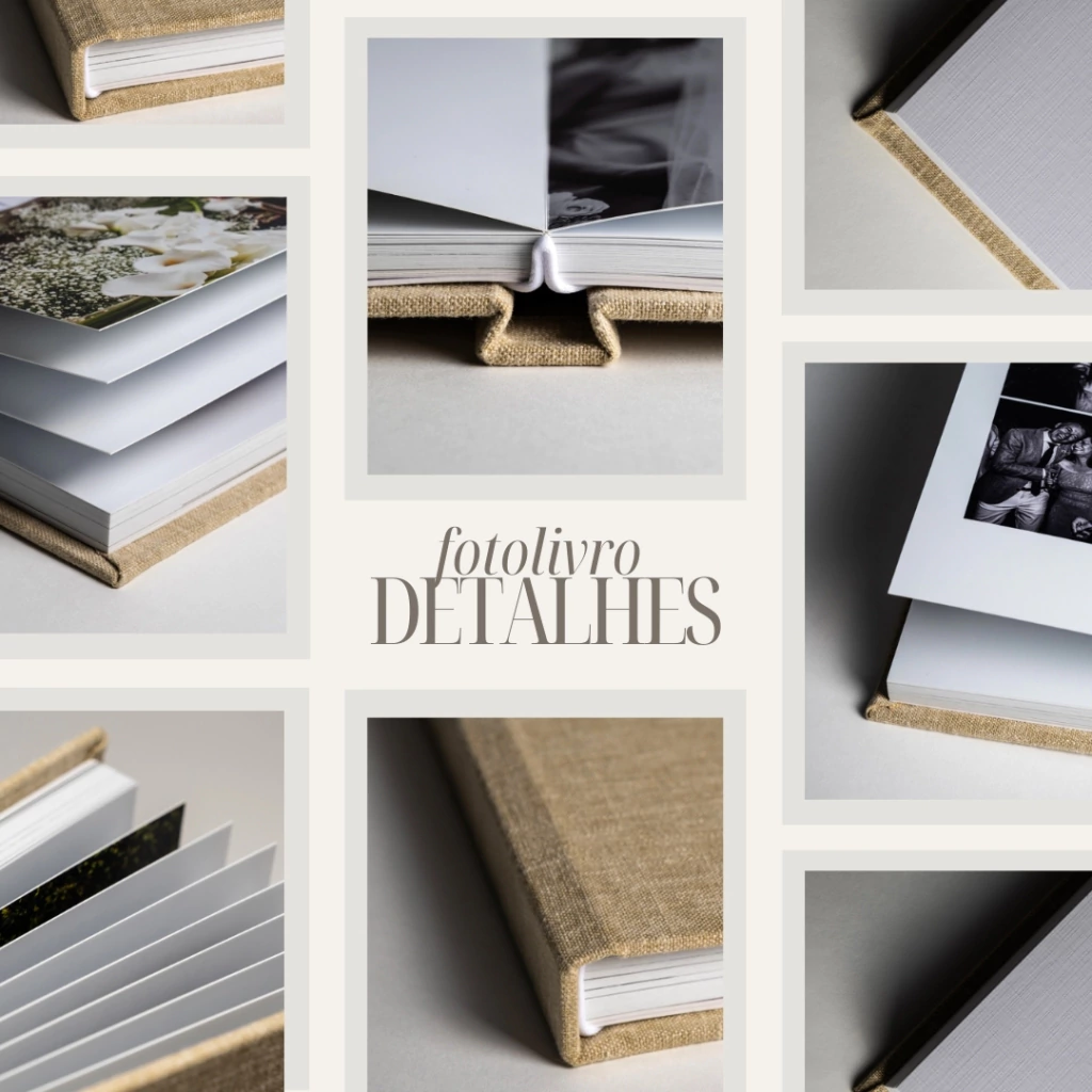Oferecemos diagramação e design de capa personalizados, garantindo uma apresentação profissional. Após sua aprovação, o fotolivro é impresso em uma gráfica especializada com páginas em papel fotográfico de alta qualidade 400g, garantindo durabilidade e um toque especial. A capa é feita de cartão rígido revestido em linho, incluindo impressão UV de um template personalizável, combinando suavidade e robustez. O linho é 100% orgânico e sustentável, proporcionando um toque macio e resistência. Através da combinação de um sistema de impressão de luz ultravioleta e de tintas especiais, este processo garante alta qualidade e durabilidade à personalização. Caracteriza-se por ser um processo ecológico e que permite escolher entre uma vasta gama de cores.